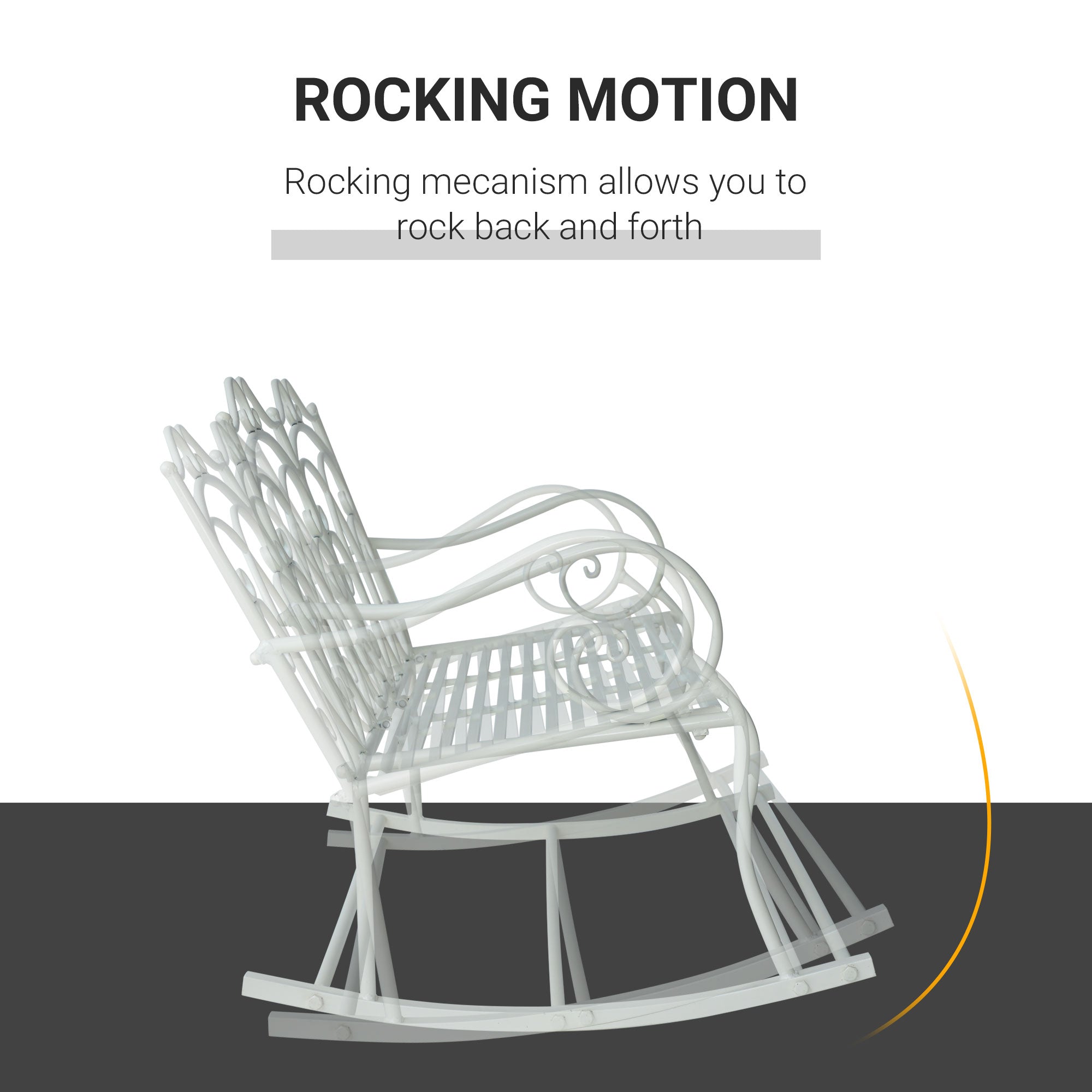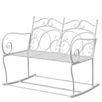 Patio 2 Seater Rocking Bench Steel Garden Outdoor Garden Loveseat Chair w/ Decorative Backrest White