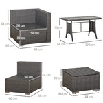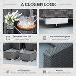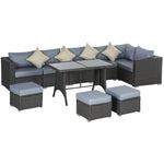 9-Seater Garden Rattan Furniture 10 Pcs Rattan Corner Dining Sofa Set, Grey/Dusty Blue Cushion