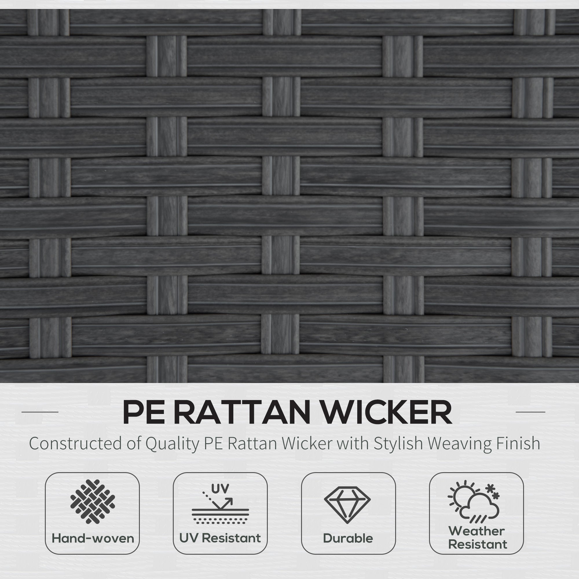 Material: Steel frame, PE rattan, Polyester