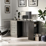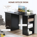 Computer Desk, Writing Table, PC Workstation with 3 Storage Shelves and Drawers, Black Handle, for Home Office, Black