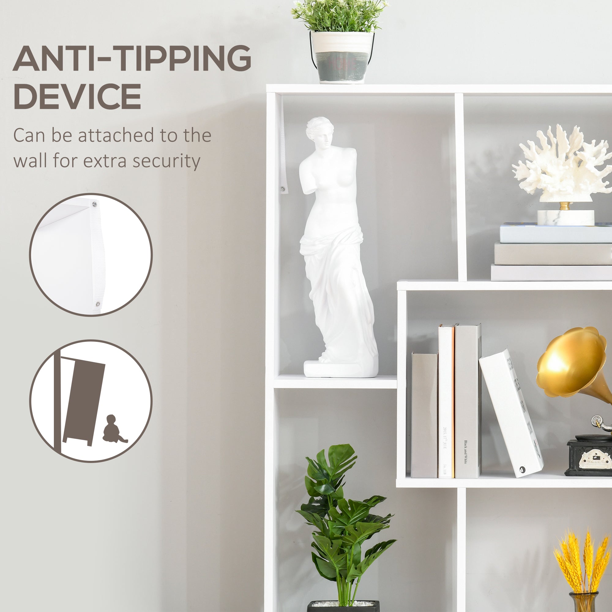 8-Tier Freestanding Bookcase w/ Melamine Surface Anti-Tipping Foot Pads Home Display Storage Grid Stand Bedroom Living Room Furniture Modern Style - White