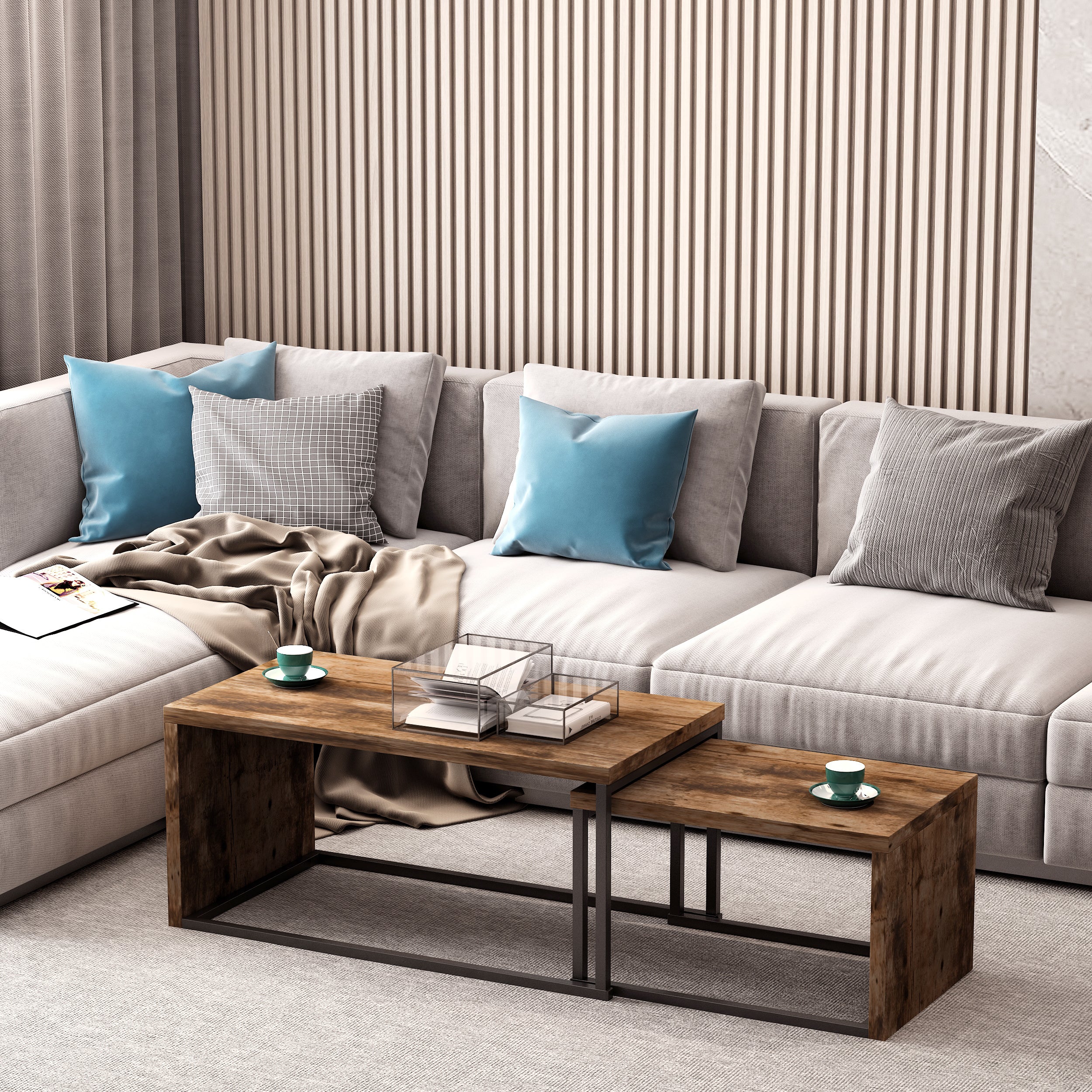 Small coffee table can be stored inside the larger coffee table for space saving