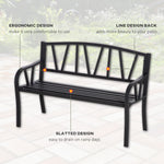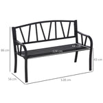 2-Seater Garden Bench Metal Loveseat w/ Decorative Backrest Ergonomic Armrest