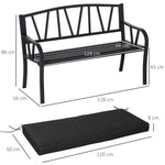 2-Seater Garden Bench with Cushion, Metal Loveseat, Slatted Outdoor Park Chair with Decorative Backrest and Armrest, Black