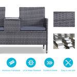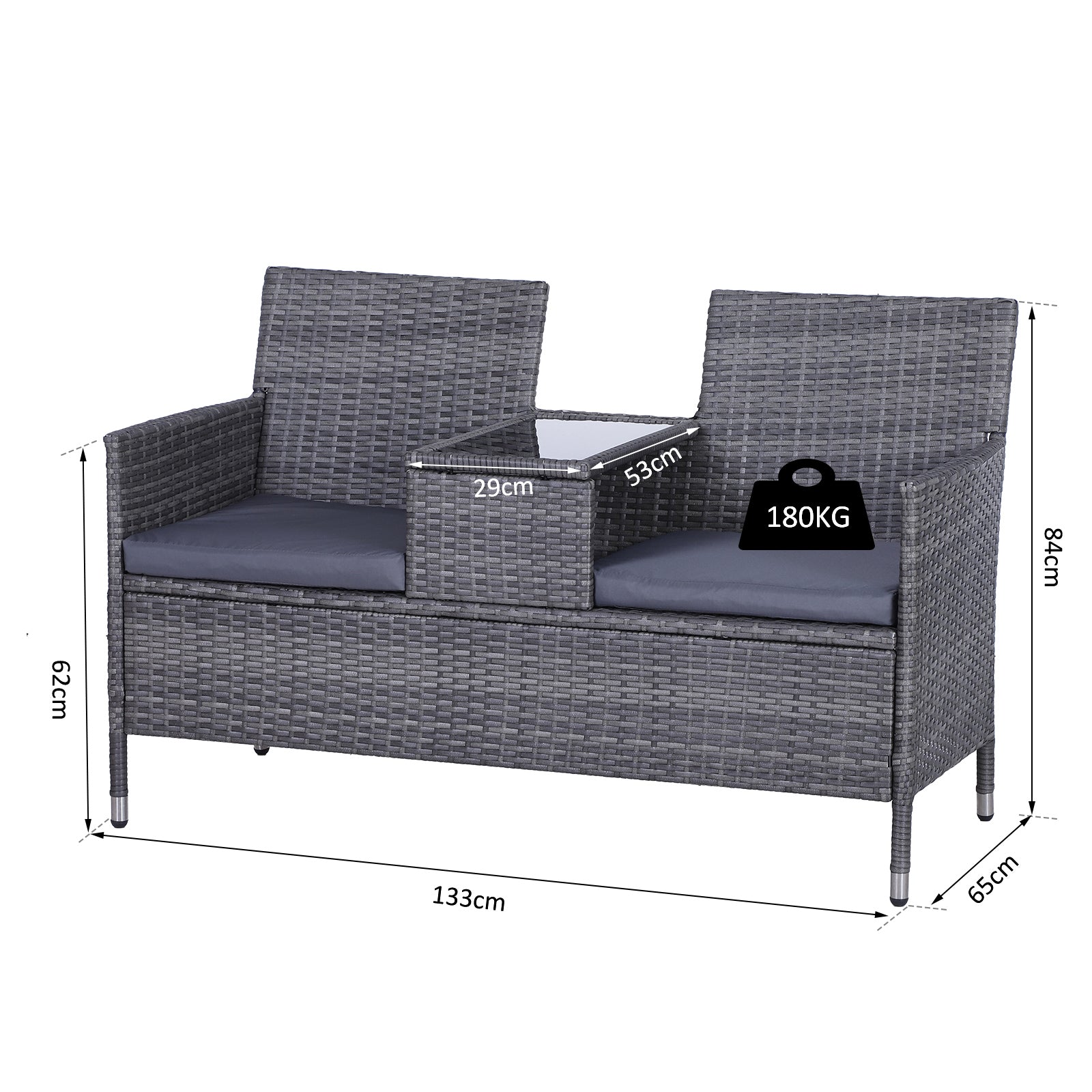 2-Seater PE Rattan Outdoor Garden Bench w/ Centre Table Grey