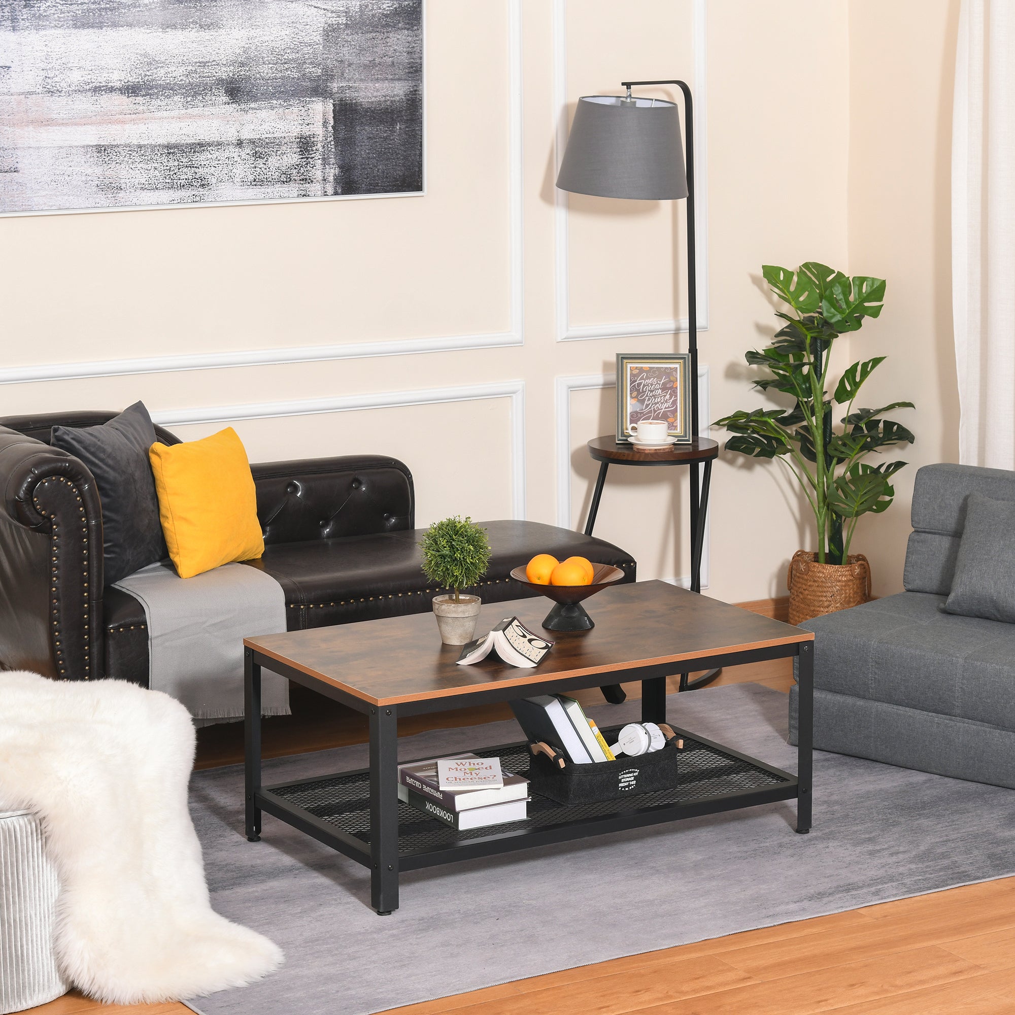 Coffee Table Industrial Side Table Living Room Table with Storage Shelf and Metal Frame for Home Office, 106L x 60W x 45Hcm