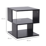 Side Table Square Coffee Table Modern End Table with 2 Tier Storage Shelves for Living Room, Bedroom, Black