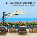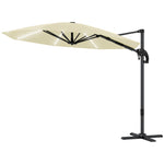 3(m) Cantilever Garden Parasol with Solar Powered Lights, Crank Handle & Cross Base, UPF 50+, 360° Rotation, Cream