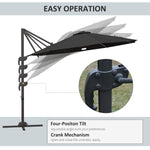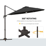 Cantilever Parasol, with LED Lights and Cross Base - Dark Grey