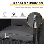 3 Pieces Rattan Bistro Set, Wicker Garden Furniture Set with Glass Top Coffee Table and Chairs, Thickened Washable Cushions for Outdoor, Patio, Balcony, Black