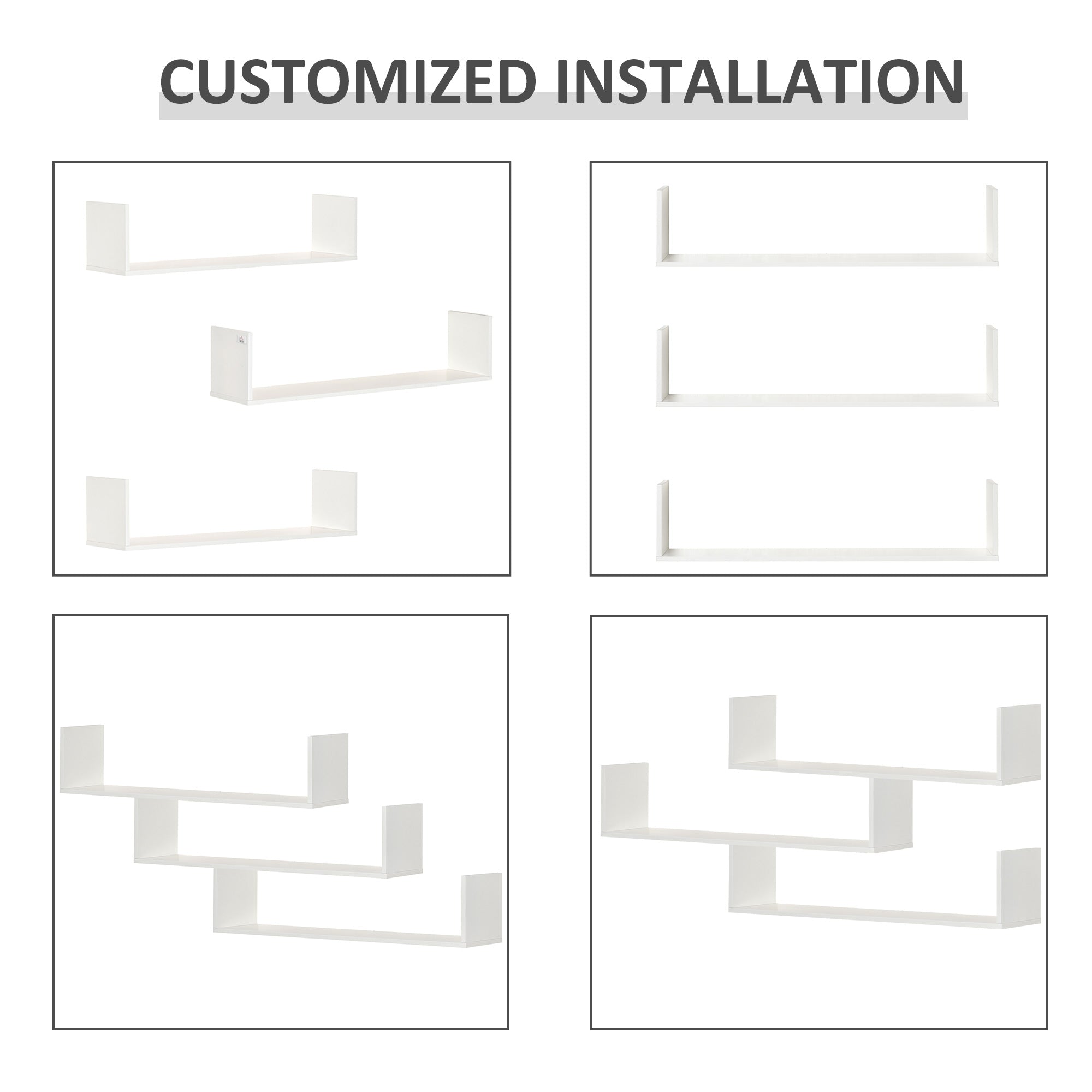 Set of 3 Wooden U-Shaped Floating Shelves Set Wall Mounted Hanging Bookshelf CD DVD Storage Display for Bedroom Living Room Kitchen, White