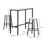 Three-Piece Marble-Effect Bar Table Set - White/Black