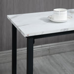 With this two-person dining set, you can sit with company, to enjoy a meal together - day and night - with the table and two stools. Powder coated steel frames mean a strong core, whilst the marble-effect top tops bring a touch of elegance. Both the kitchen table and the chairs feature a bottom bar to rest your feet so they don't annoyingly dangle.