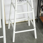 Two footrests on the stools. Each leg features a protective footpad
