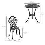Enjoy outdoor times with some vintage charm, with this three-piece bistro set. The hollow-carved tulips design is beautiful. Made from cast aluminium for long-term use. The table of this garden set features an umbrella hole, so you can all keep shaded from a parasol safely when it's sunny.