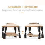 3 Seater Swing Chair 3-in-1 Convertible Garden Swing Seat Bed Gazebo Patio Bench Outdoor with Double Tier Canopy, Cushioned Seat, Mesh Sidewalls, Beige