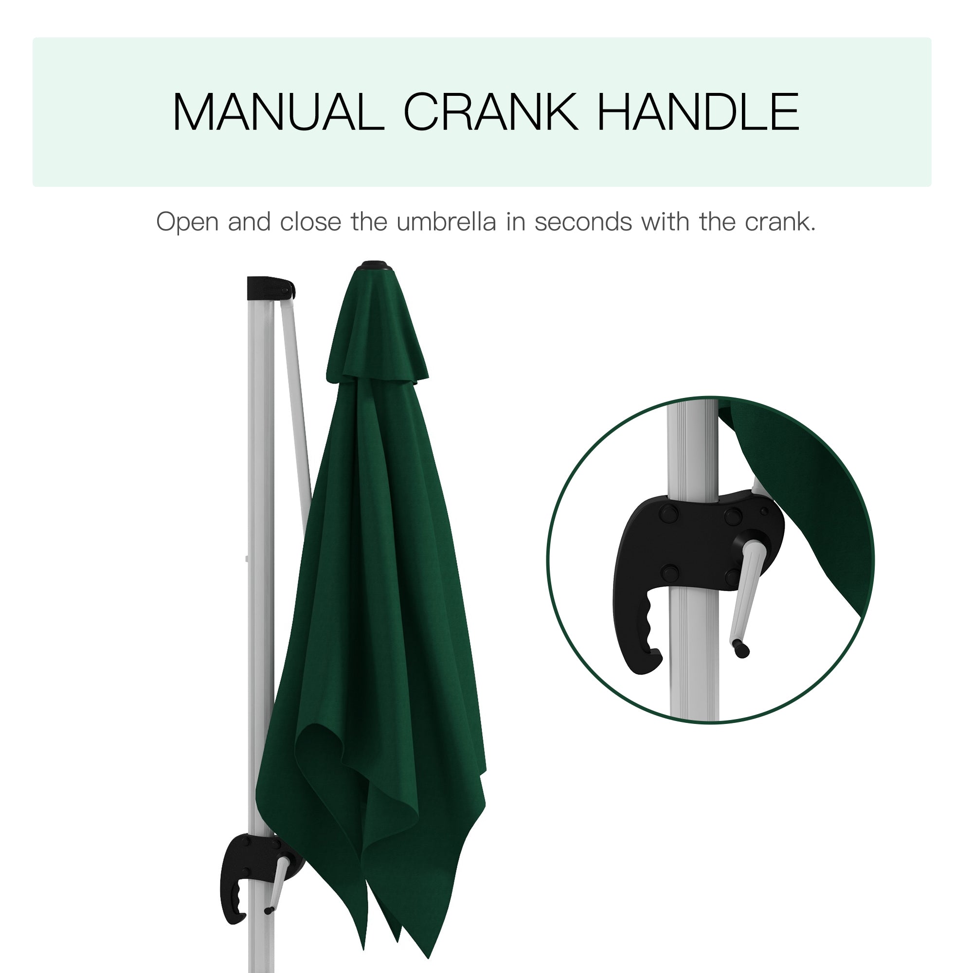 Square Cantilever Garden Parasol, with Five-Position Canopy - Green