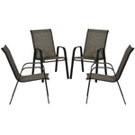 Sit outdoors with friends, thanks this set of four stackable gardens. The high back and armrests support your body. The breathable mesh fabric is comfortable. The stackable design makes it compact for easy storage. A set to bring your favourite people together outdoors.