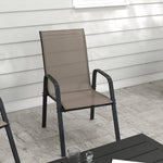Sit outdoors with friends, thanks this set of four stackable gardens. The high back and armrests support your body. The breathable mesh fabric is comfortable. The stackable design makes it compact for easy storage. A set to bring your favourite people together outdoors.