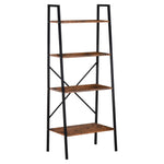 Bookcase 4-Tier Vintage Ladder Shelf with Wood Storage Rack, Stand Plants Display, Black and Brown