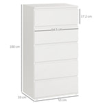 Chest of Drawers, 5 Drawers Storage Cabinet Floor Tower Cupboard for Bedroom Living Room, White