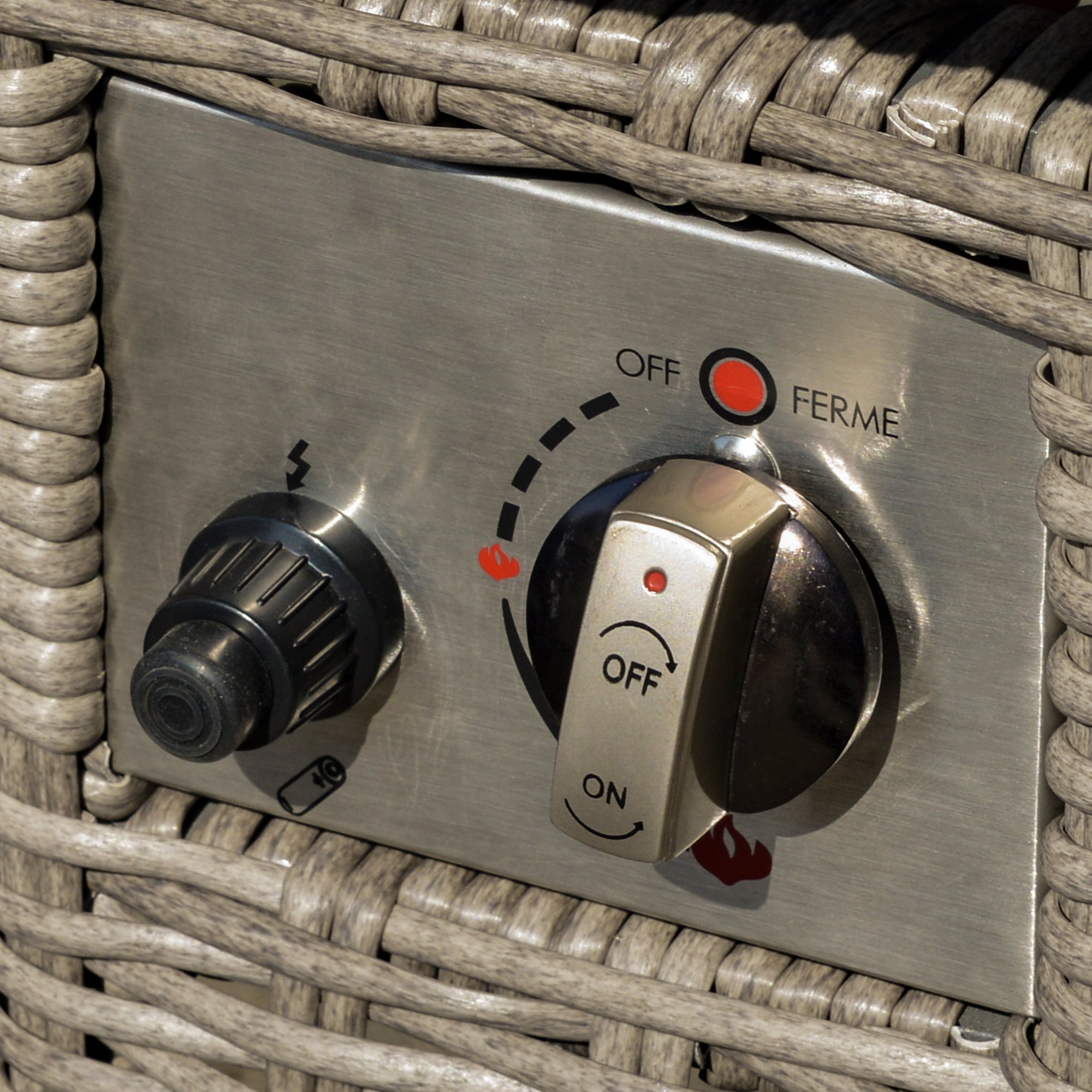Set includes two 3-seater sofas, two footstools and a gas fire pit table