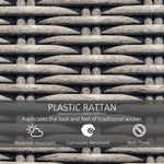 Brighten it with this 3pc platic Outdoor Patio Furniture Set and make the outside of your home just as inviting as the inside! Woven of durable plastic material that replicates the look and feel of traditional wicker but is more resistant to sun, rain, heat and cold outdoor weather condition use. Soft padded seat and back cushion included provide extra comfort, ready to use and low maintenance allows you to enjoy your garden life.