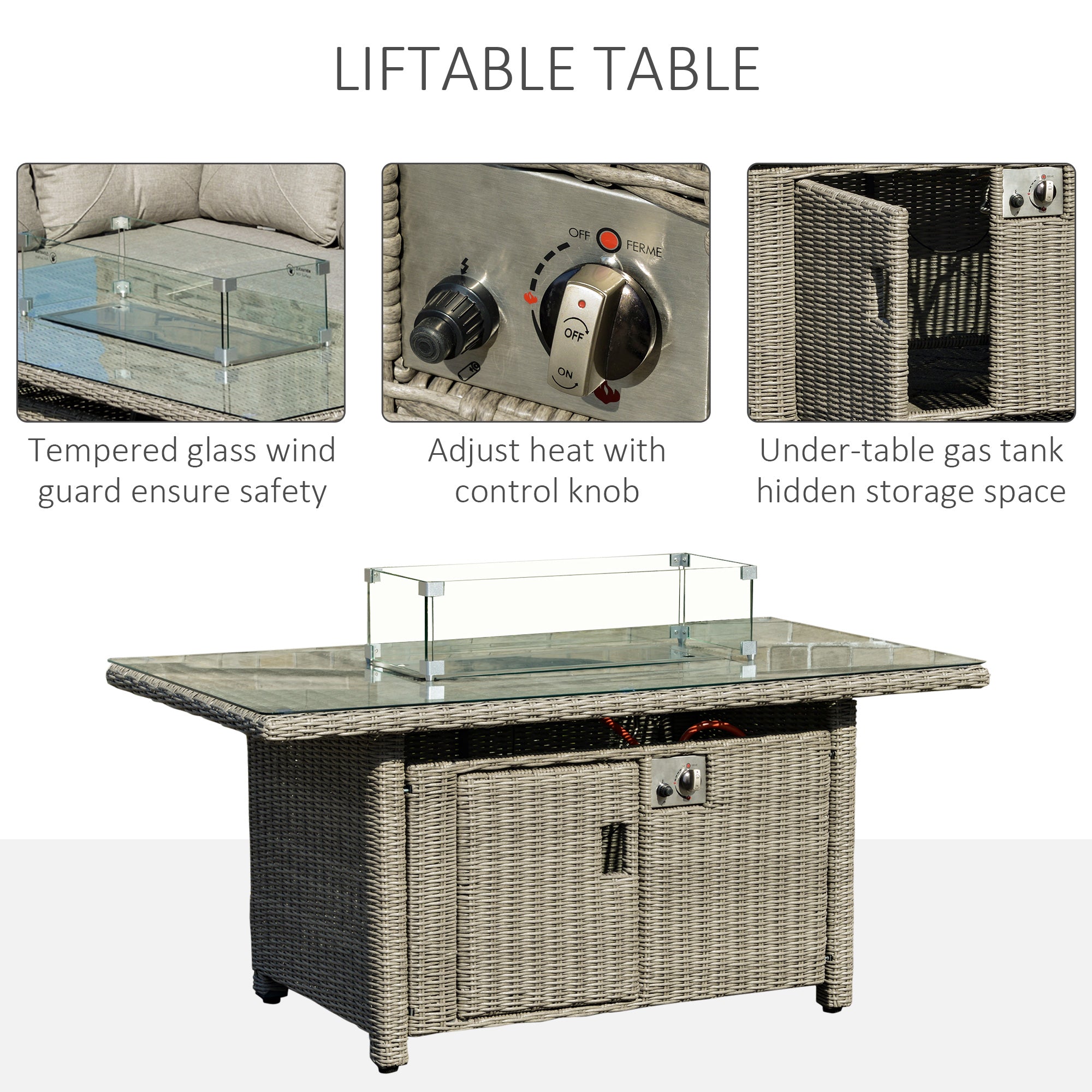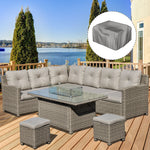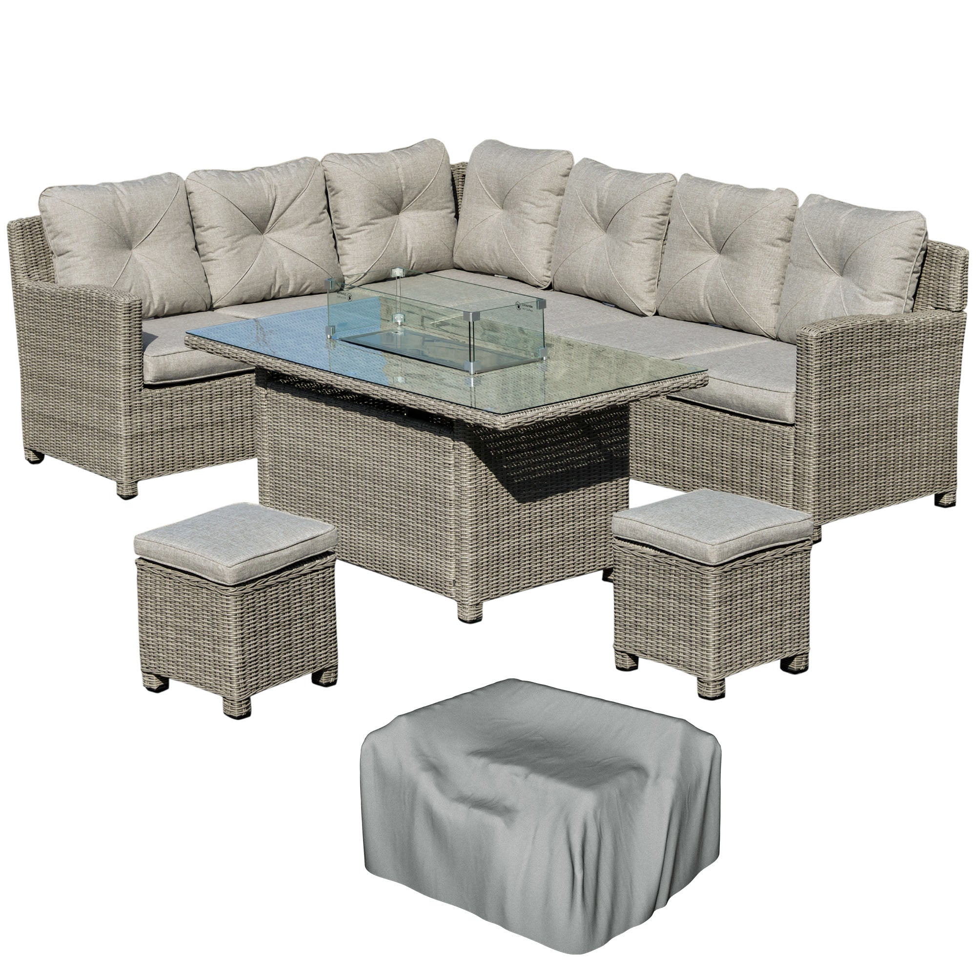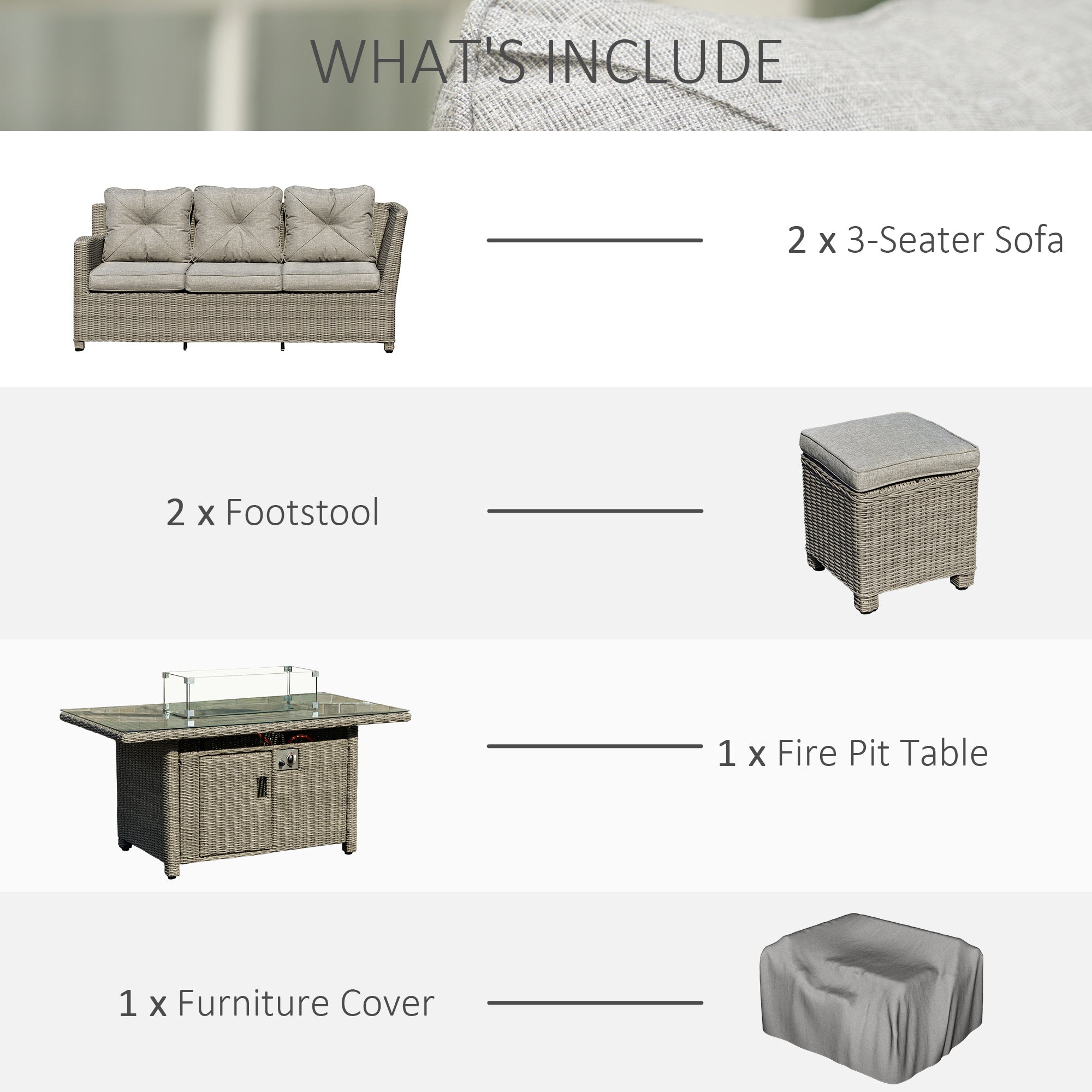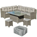 8-Seater Outdoor PE Rattan Sofa Set Conversation Set w/ Fire Pit Table, L-Shape Sofa, Footstool and Furniture Cover