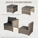 8 Pieces PE Rattan Sofa Set with Cushions, Garden Corner Sofa with 4 Seater Sofa, 2 Footstools and 2 Coffee Table Set, Space-saving Design, No Assembly Required, Grey