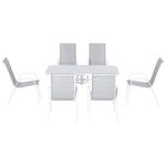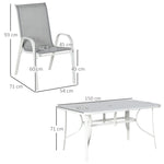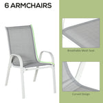 Check out this outdoor dining set to complete your space. The set includes six garden dining chairs and a round glass-top table with an umbrella hole - you've got everything you need to dine with family/friends and keep protected. The metal frames of each piece are strong and rust-resistant, with the breathable mesh chairs making them suitable for hotter climes. An excellent addition to your outdoor areas all year round.