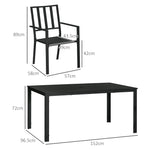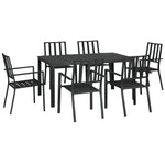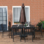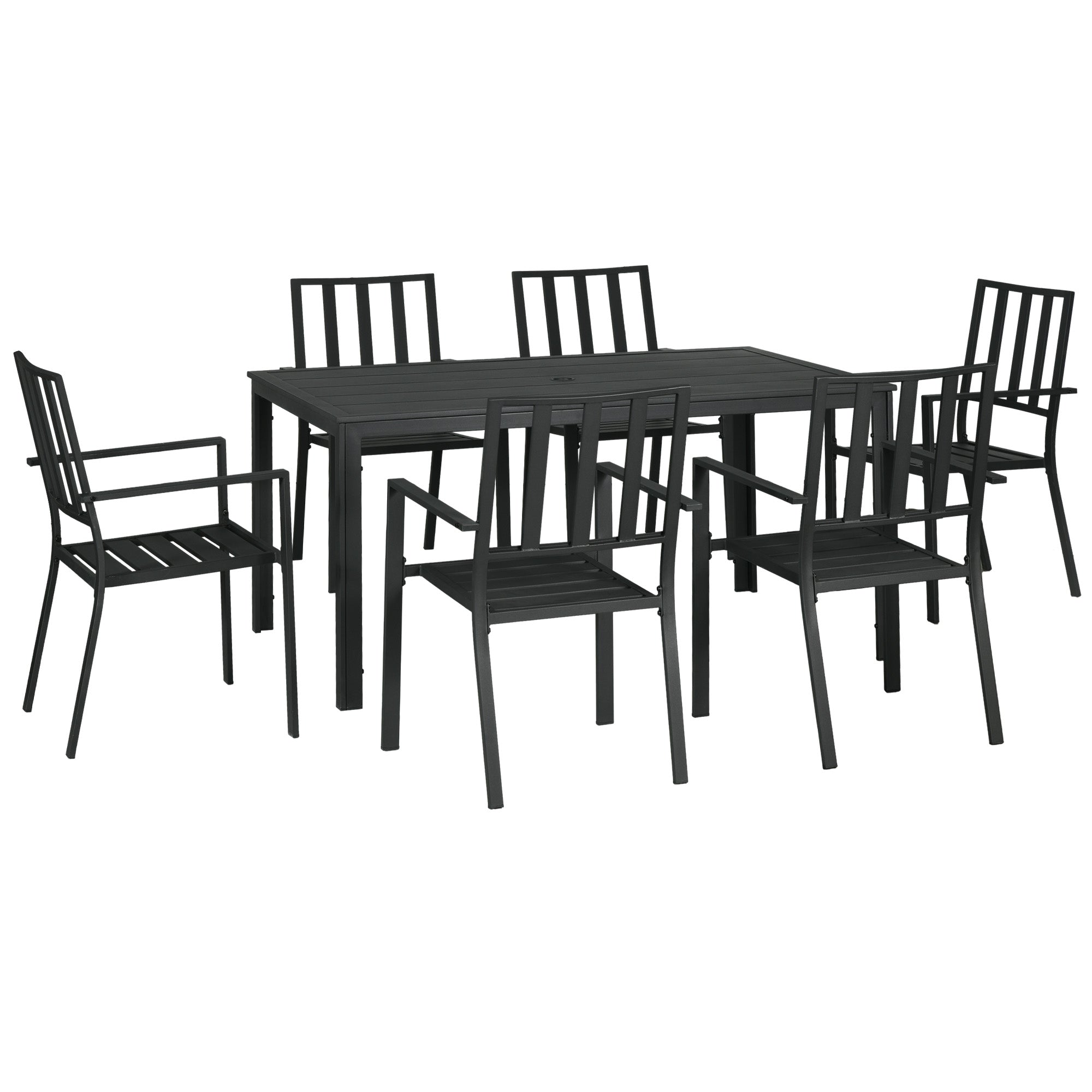 Seven-Piece Minimal Metal Garden Dining Set, with Parasol Hole - Black