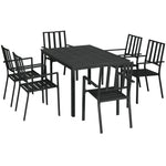 Outdoor dining set formed of metal dining table and six matching chairs