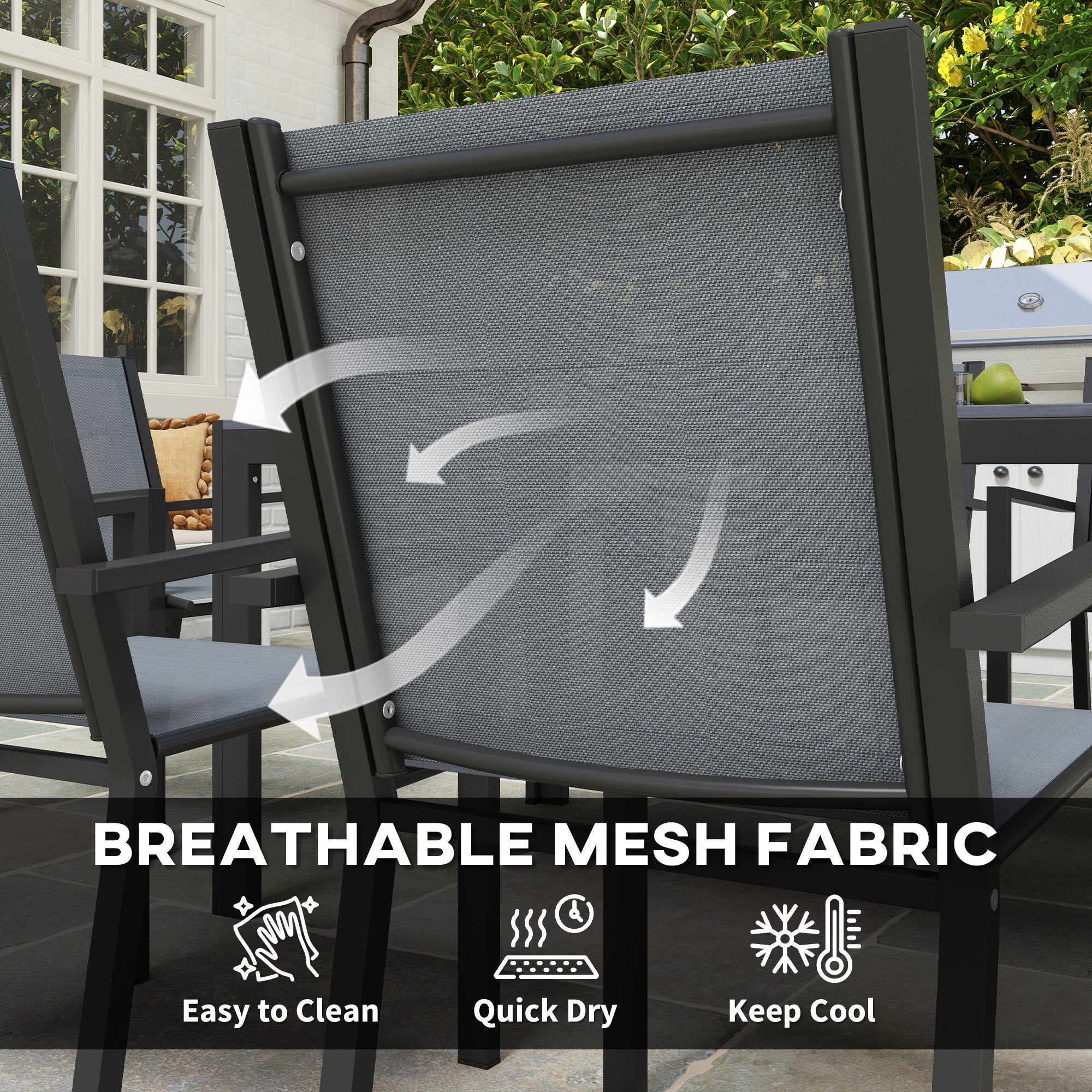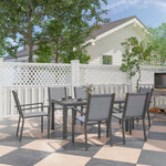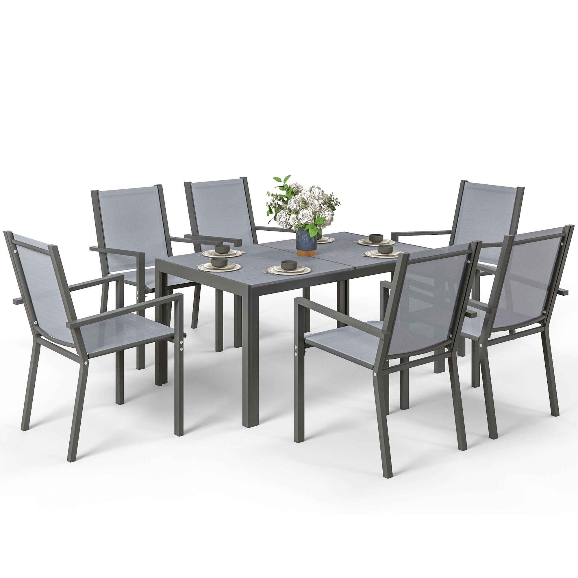 Seven-Piece Garden Dining Set, with Plastic Wood-Top Table - Grey