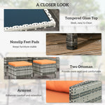 7-Seater Patio wicker Sofa Set Rattan Chair Furniture w/ Glass & Cushioned, Orange
