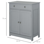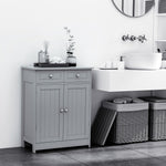 75x60cm Freestanding Bathroom Storage Cabinet Unit w/ 2 Drawers Cupboard Adjustable Shelf Metal Handles Traditional Style Grey