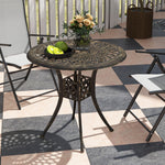 78 cm Round Garden Dining Table with Parasol Hole Antique Cast Aluminium Outdoor Table Only, Bronze Tone