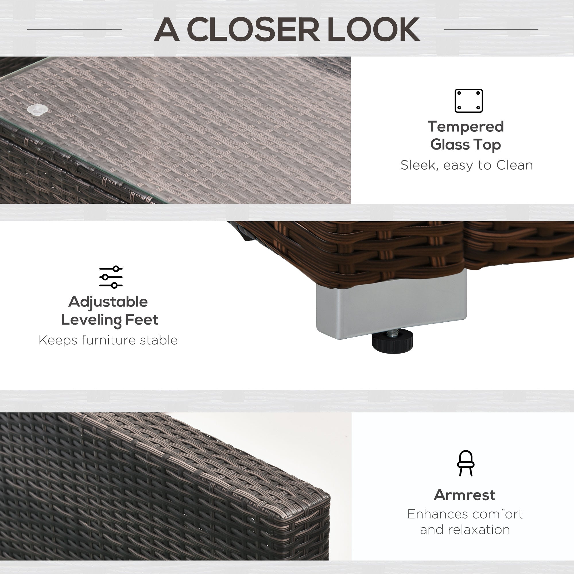 Material Used: PE rattan, Aluminium frame, Tempered glass