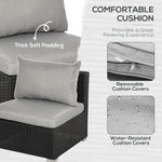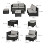 8 Pieces PE Rattan Sofa Set with Cushions, Garden Corner Sofa with 4 Seater Sofa, 2 Footstools and 2 Coffee Table Set, Space-saving Design, No Assembly Required, Black