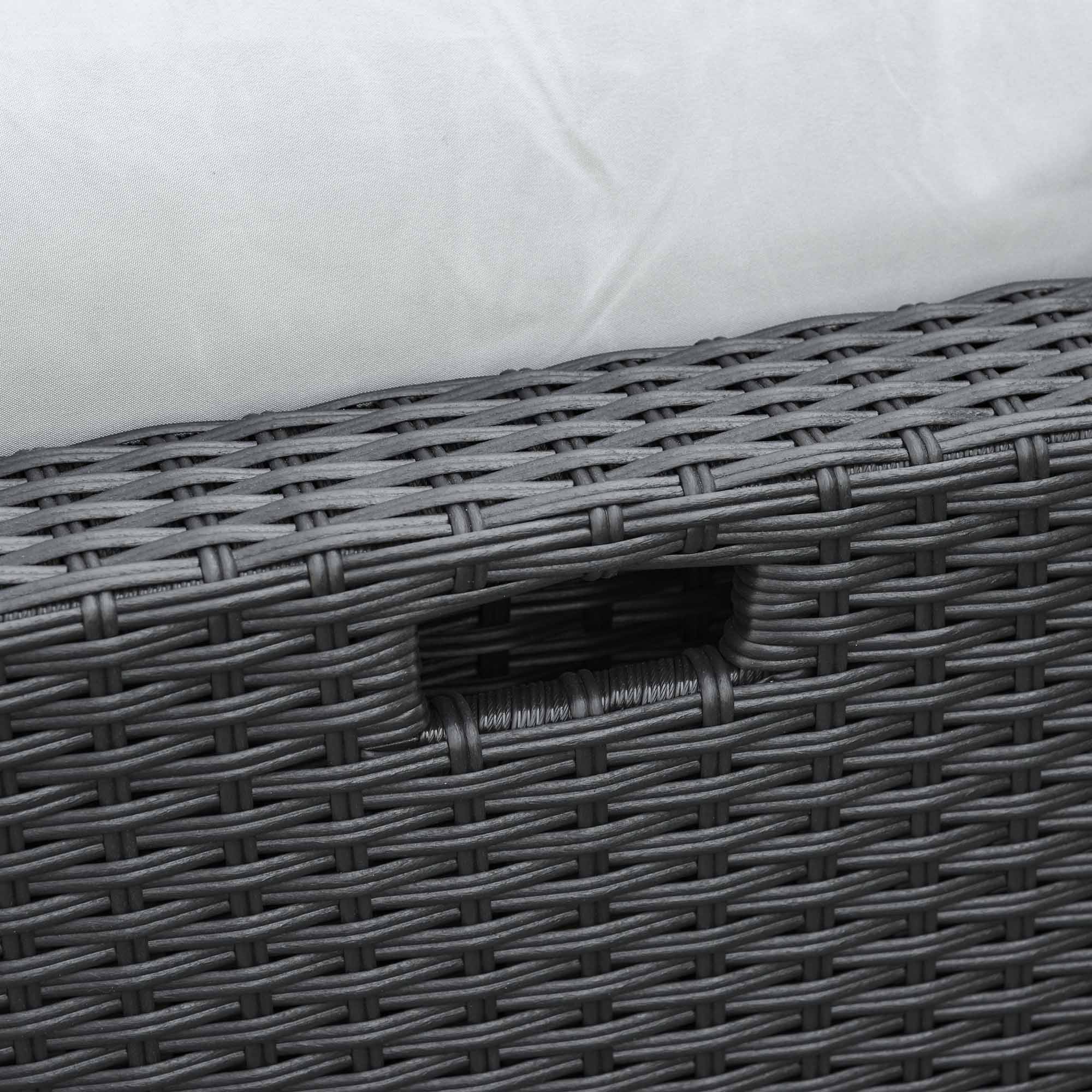 Powder coated steel frames are strong, wrapped in UV and water-resistant plastic wicker