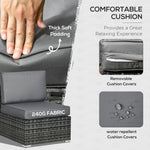 8 Pieces PE Rattan Corner Sofa Set, Outdoor Garden Furniture Set, Patio Wicker Sofa Seater w/ Cushion, Washable Cushion Cover & Tempered Glass Table, Grey