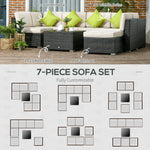 7-Seater PE Rattan Corner Sofa Set, Garden Furniture Set, Patio Wicker Sofa Seater w/ Cushion, Washable Cushion Cover & Tempered Glass Table, Brown