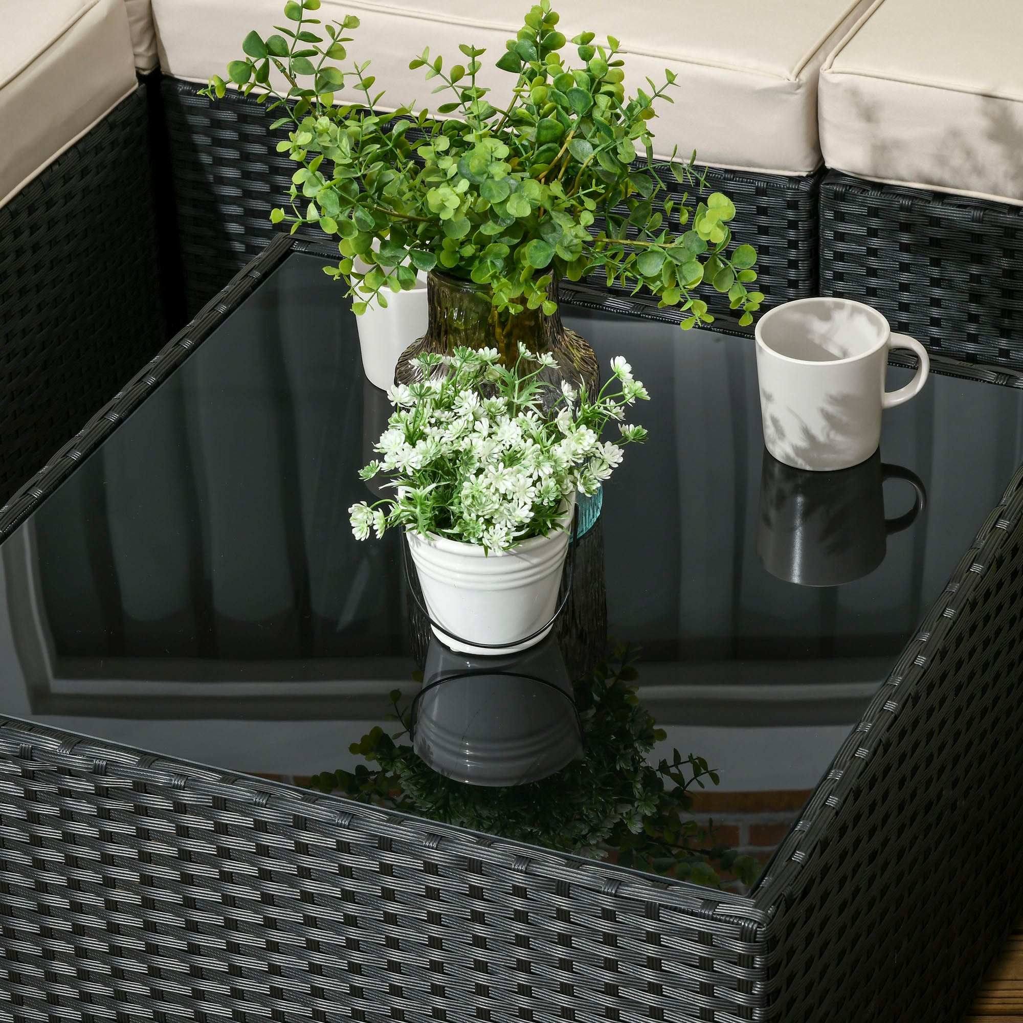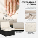 8 Pieces PE Rattan Corner Sofa Set, Outdoor Garden Furniture Set, Patio Wicker Sofa Seater w/ Cushion, Washable Cushion Cover & Tempered Glass Table, Black