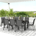 8 Seater Garden Dining Set with Stacking Chairs, Rectangular Tempered Glass Top, Garden Furniture Set, Outdoor Dining Table and Chairs for Patio, Balcony, Poolside, Dark Grey