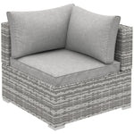 Outdoor PE Rattan Corner Sofa, Garden Wicker Furniture Single Sofa Chair w/ Cushions, Light Grey