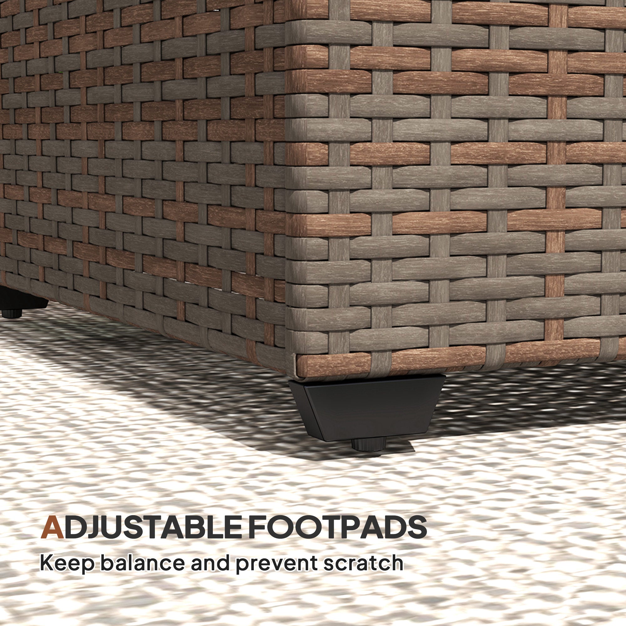 Forever style for your garden with this rattan garden table. A galvanised steel frame with powder coating for a strong core structure; wrapped in tough plastic rattan, the garden side table effortlessly matches your current rattan garden furniture. It's fitted with a 5mm thick tempered top for a sleek touch and a safe holding place. Complete with adjustable feet for stability.
