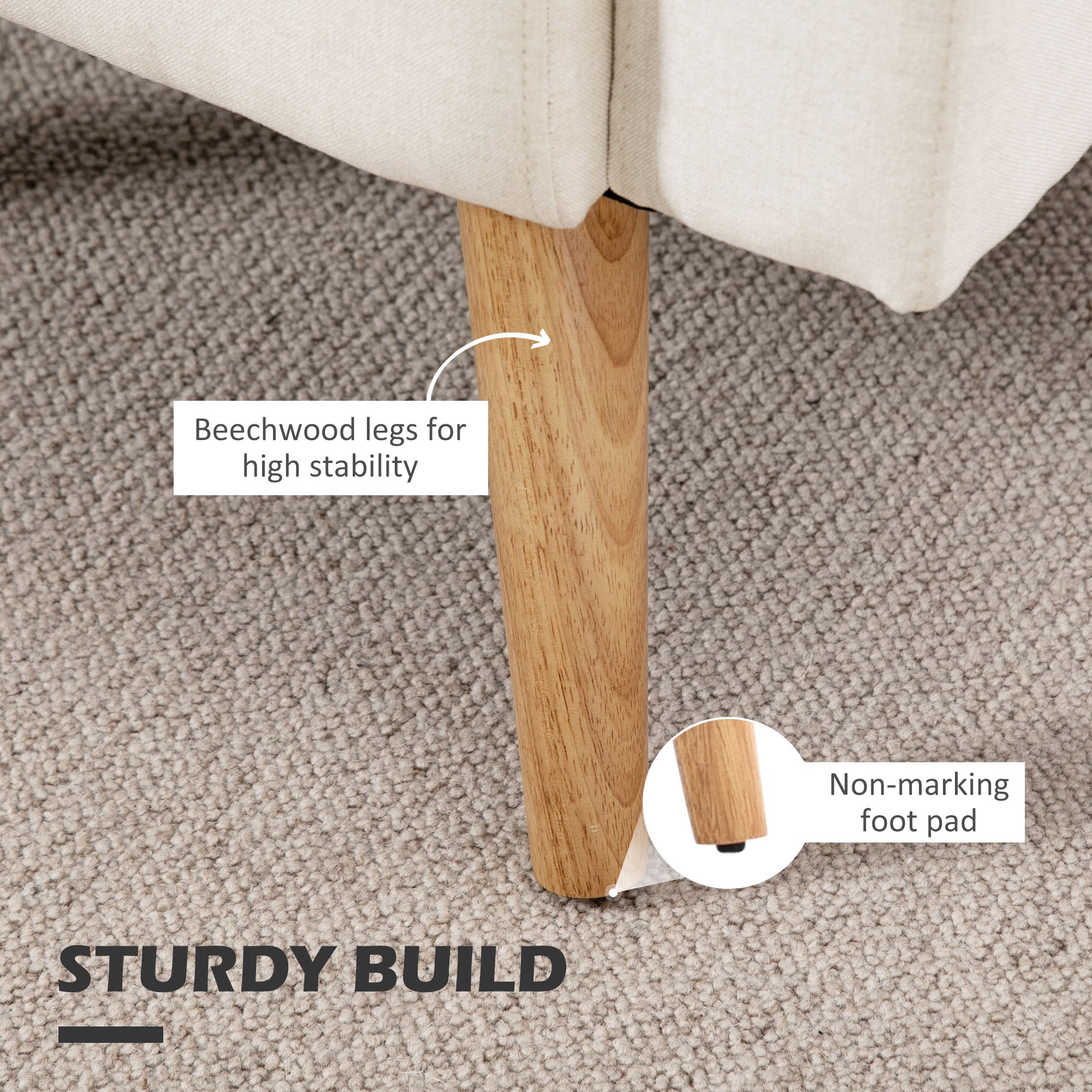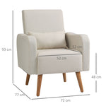 Accent Chair, Linen-Touch Armchair, Upholstered Leisure Lounge Sofa for Living Room, Club Chair with Wooden Frame, Cream