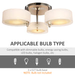 Acrylic Lamp Indoor 3 Light Pendant Chandelier Flush Mount Office Living Room Bedroom w/ Chrome Finish
