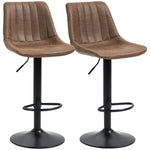 Bar Stools Set of 2, Swivel Counter Height Barstools with Back, Adjustable Bar Chairs, Breakfast Dining Stools for Kitchen Island Counter with Adjustable Steel Footrest & Base, Brown