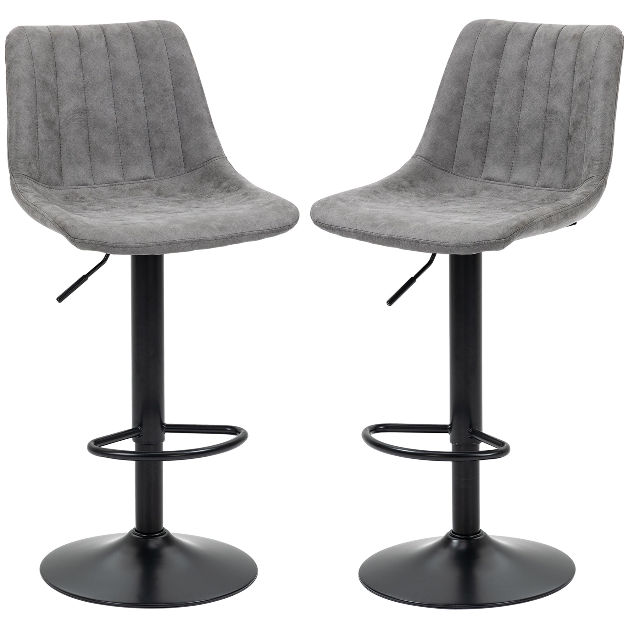 Bar Stools Set of 2, Swivel Counter Height Barstools with Back, Adjustable Bar Chairs, Breakfast Dining Stools for Kitchen Island Counter with Adjustable Steel Footrest & Base, Grey