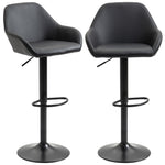 Bar Stools Set of 2, Height Adjustable Swivel Barstools, PU Leather Kitchen Stools with Backs, Armrests and Footrest for Home, Counter and Dining Room, Black